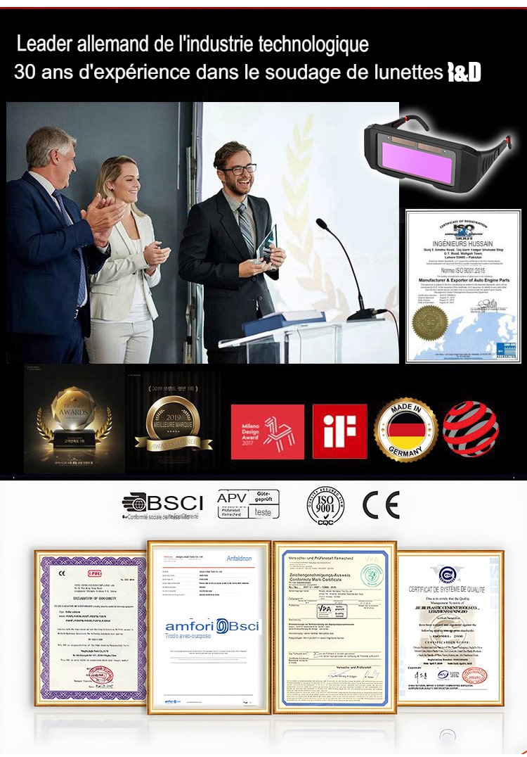 ăLunettes + 5 feuilles de protection + pince Ă cheveuxăđ„Lunettes de protection oculaire pour le soudage avec attĂ©nuation automatique.