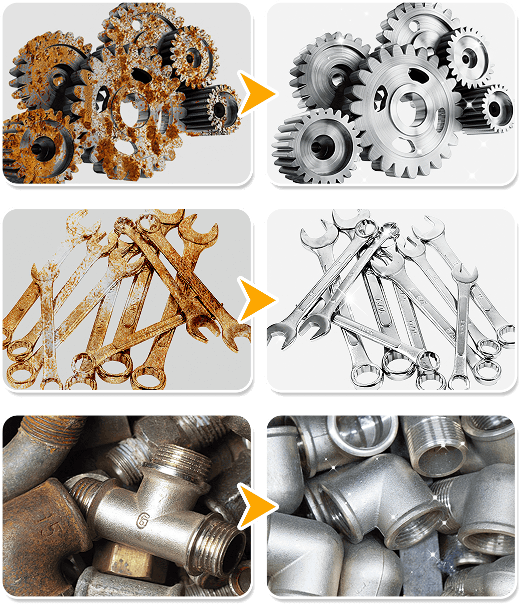 Élimine la rouille, l’huile et les taches pour restaurer l’éclat naturel du métal ✨