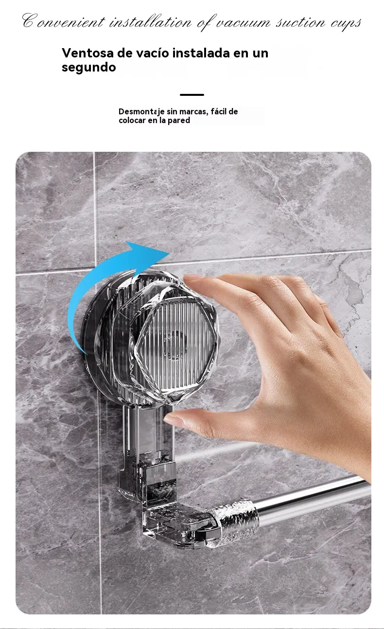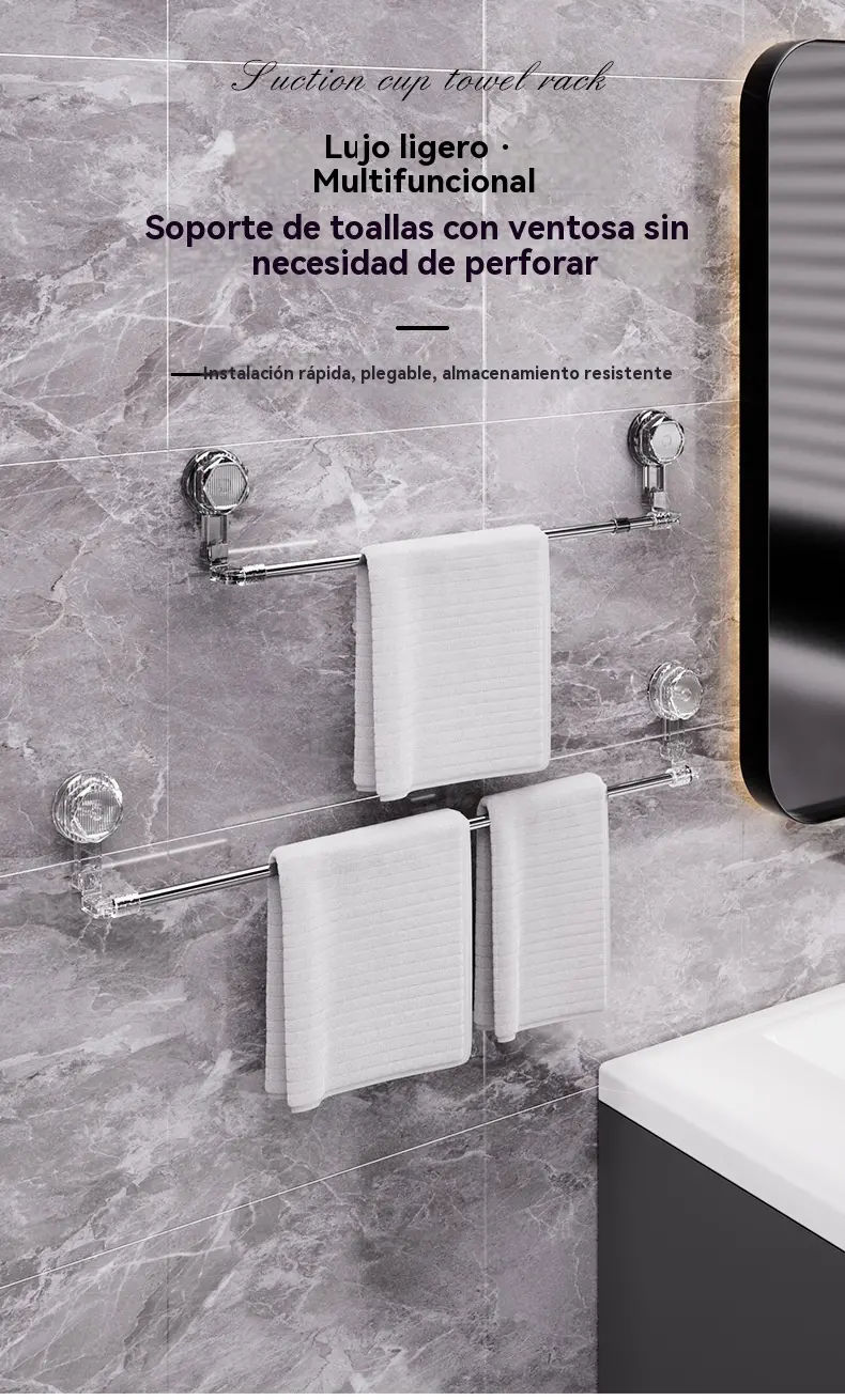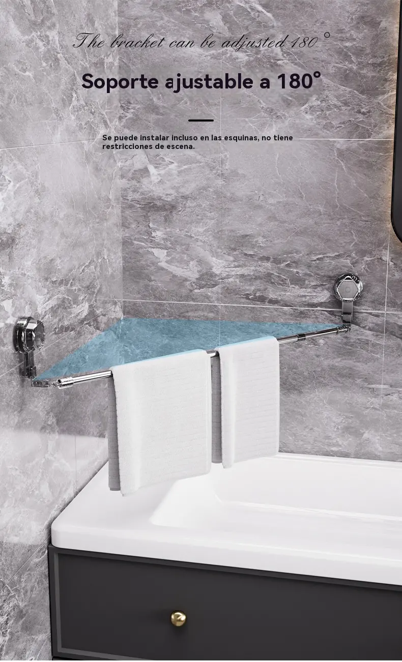 Porte-serviette réglable avec ventouse : Ne nécessite pas de perçage, n’endommage pas la surface et offre une prise confortable.